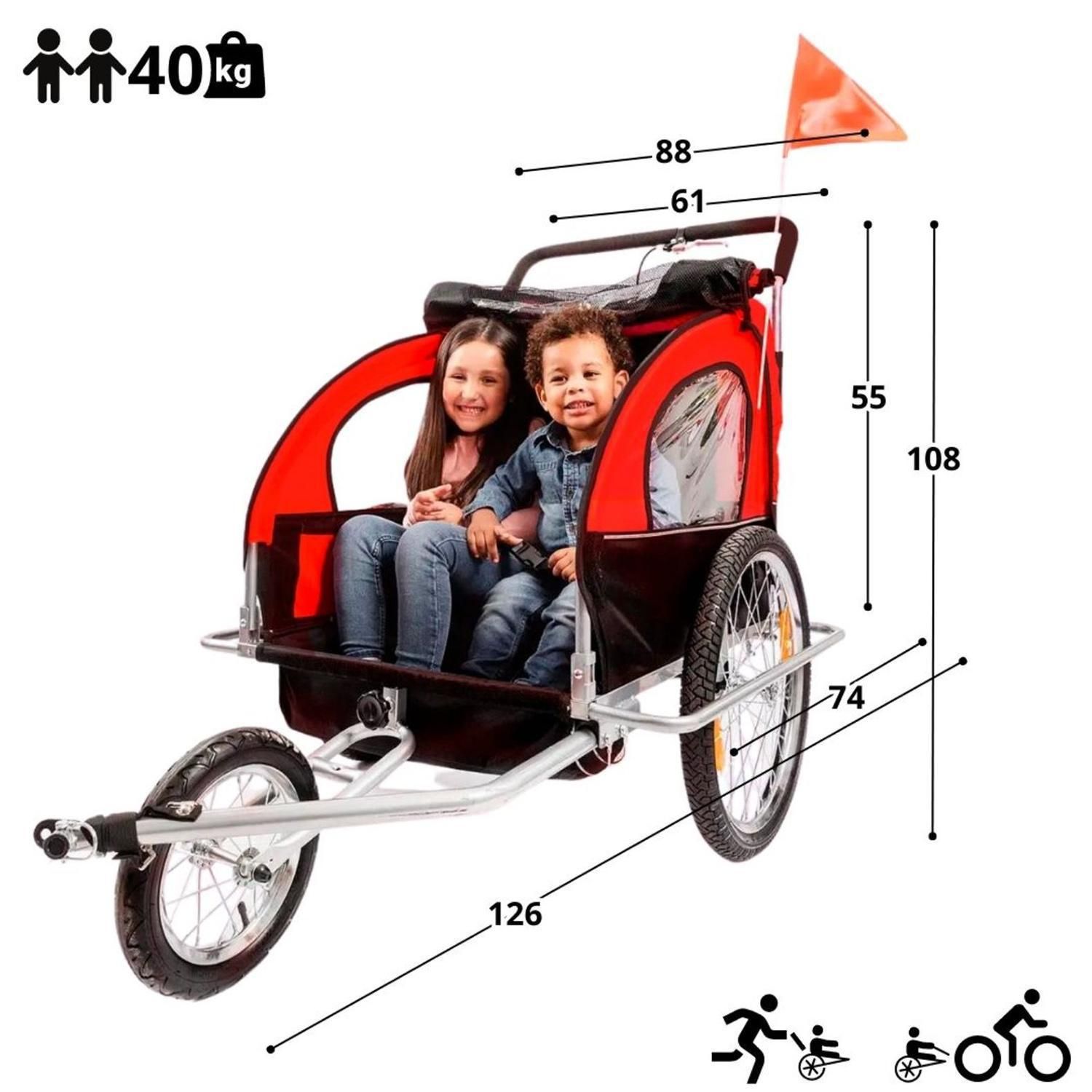 Carro jogger y trailer rojo Kidscool