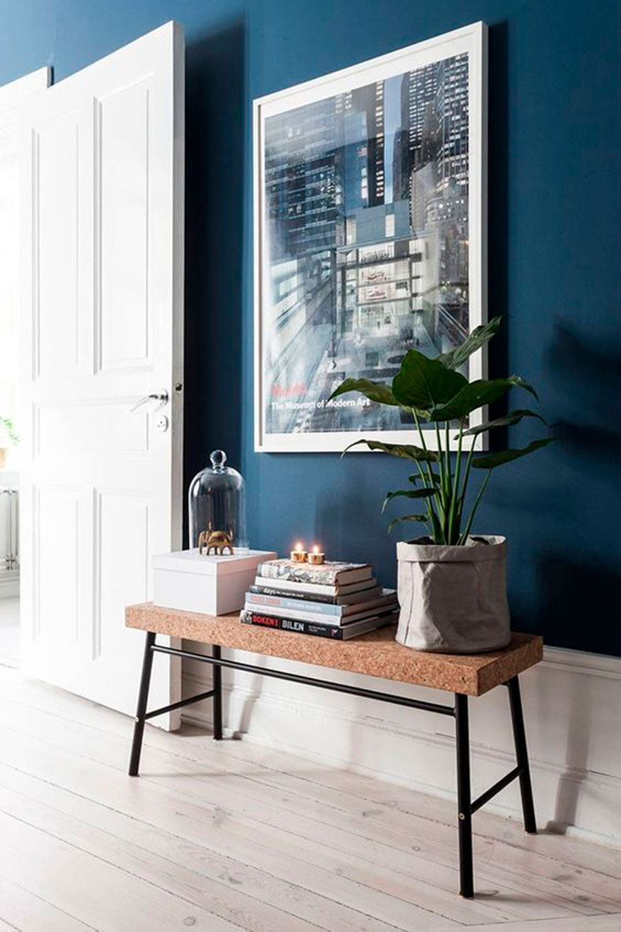 Si no eres fanático de los espejos, que es la idea más clásica para decorar las entradas, puedes reemplazarlo por un cuadro. Piensa en algo que llame la atención y de una pista sobre la personalidad de la casa y sus habitantes.