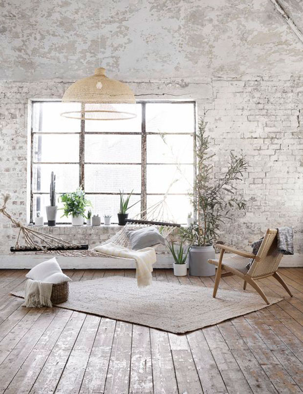 Las maderas sin pulir, el yute y toda la gama de los colores tierra. De la mano del blanco crean ambientes rústicos, cálidos y tremendamente acogedores.