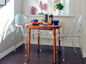 Si eres observador seguro que ya te has dado cuenta de que los colores claros ayudan a hacer que los espacios se vean más amplios. Ocupan poco espacio visual, son ligeros y además ayudan también a que los ambientes se vean más limpios, nítidos y despejados. Por eso para un pequeño comedor es siempre recomendable evitar los tonos oscuros, aunque si quieres usarlos puedes hacerlo en pequeños detalles y decoraciones sencillas.
