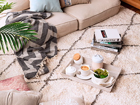 Una de las características de la Alfombra Atlas es su tacto suave, por eso es ideal para sentarse o echarse sobre ella. ¿Qué te parecería montarte un rinconcito relajante como este?