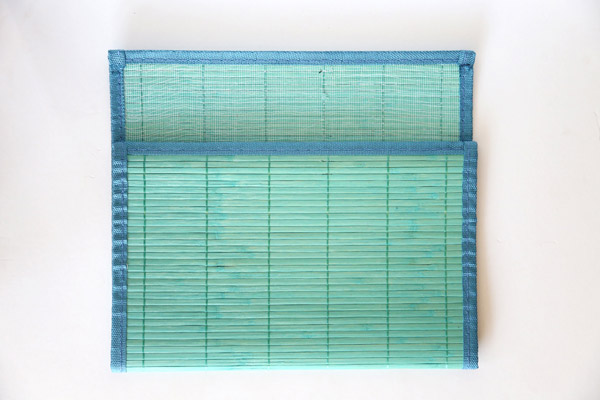 Dobla el individual, dejando 1/4 de él abierto. Pega con la silicona caliente por los costados, o si prefieres pásale la máquina de coser.