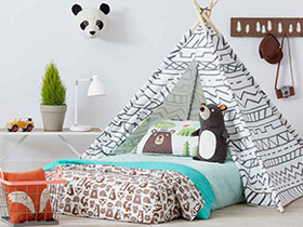 Por último adorna tu tipi para niños como quieras. En este caso agregué unas borlas de madera al cordel, pero tu puedes jugar con plumas, pompones, lanas o lo que quieras.