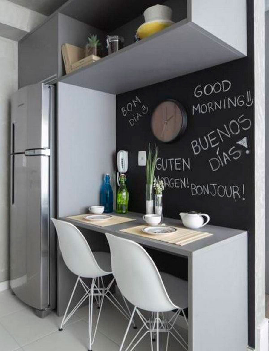 ¿Aún menos espacio? ¡Que no cunda el pánico! En el mismo mesón de la cocina o en una auxiliar se puede improvisar una barra para picar alguna cosita. Claro que no es para una cena formal, más bien una idea para acompañar al que cocina con un vinito o una cerveza y una buena conversa. Solo asegúrate de tener un taburete a mano.